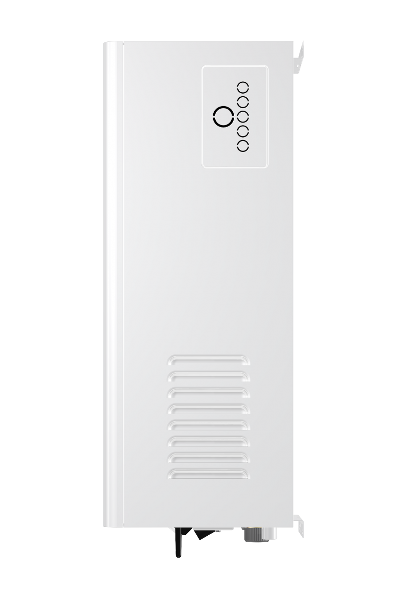 Электронное управление. На фронтальной панели расположена панель управления с дисплеем, на котором отображается температура нагрева, можно настроить температуру теплоносителя или выбрать один из трех режимов работы - Turbo, Comfort или Eco.