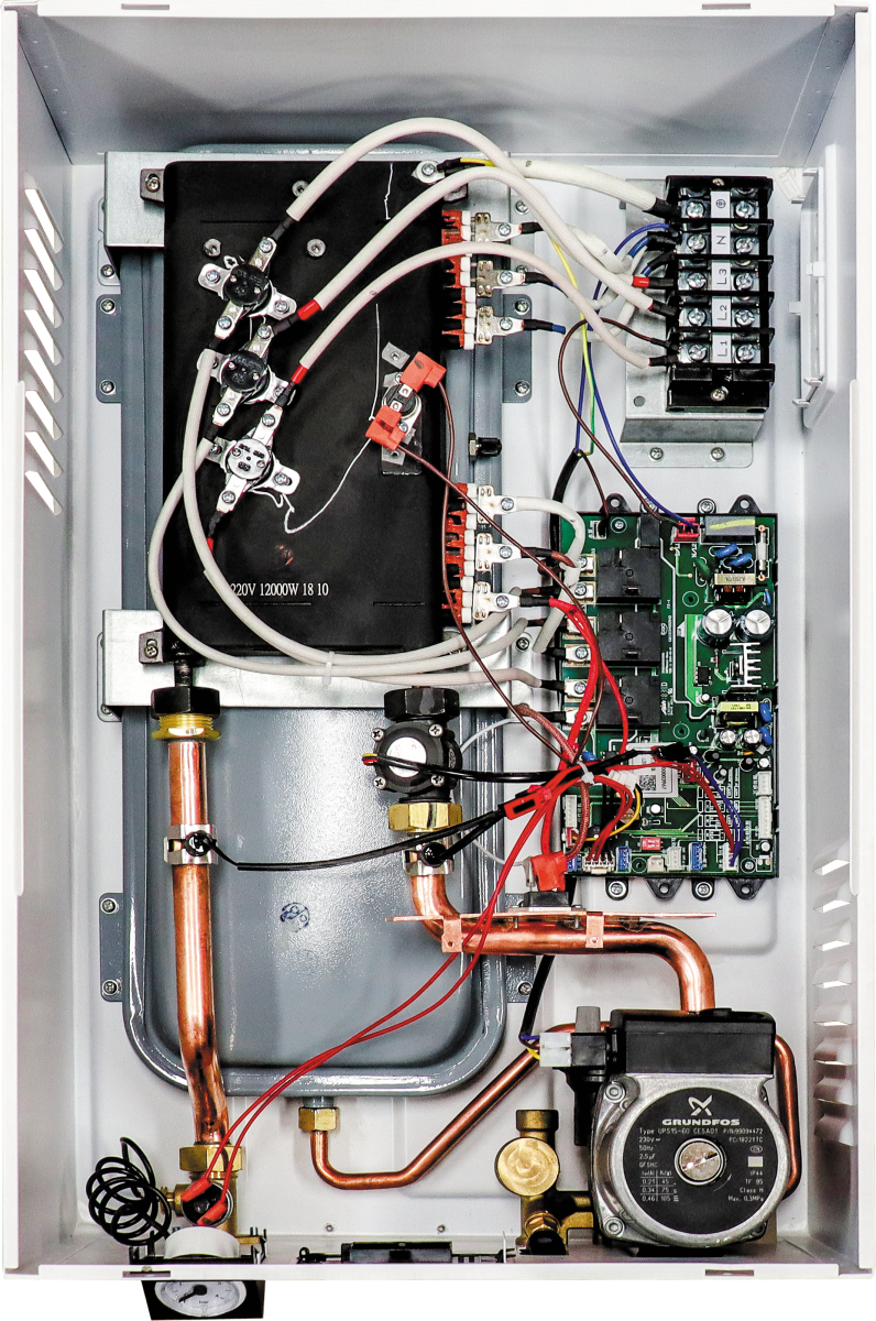 Функциональность. В Grizzly уже предусмотрен встроенный насос и расширительный бак объемом 6 литров, максимальная площадь обогрева электрического котла - 120 м2.
