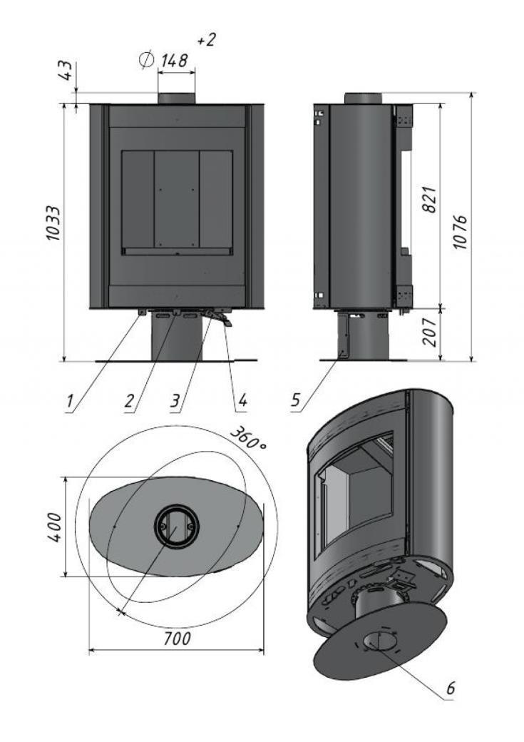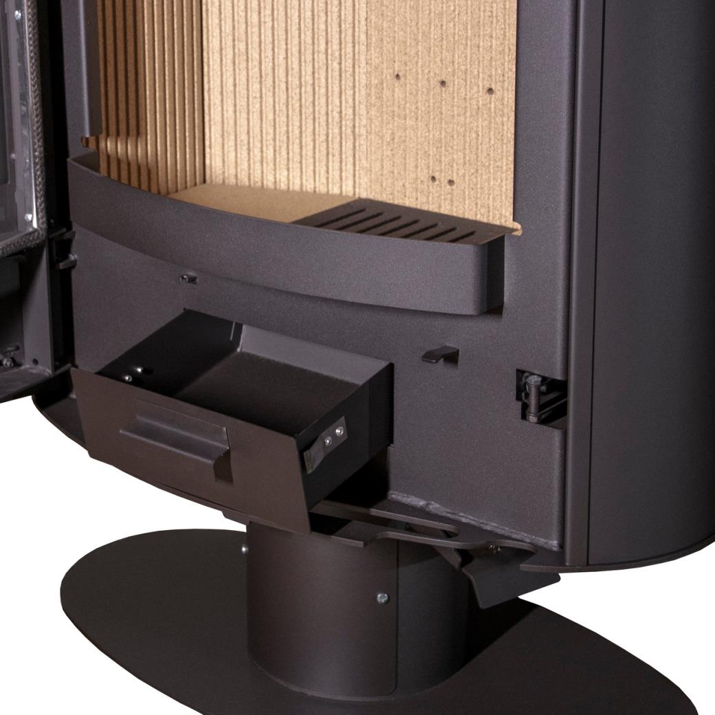 Свободностоящая широкая эллипсоидная печь в современном европейском дизайне с возможностью поворота вокруг опорной круглой стойки Печь оборудована широкой радиальной дверкой с большим радиальным стеклом. Дверка высотой 850 и шириной 500 мм дает большой обзор пламени. Идеально подходит для отопления больших клубных помещений, выполненных в современном дизайне, площадью 35-70 м2. Может изготавливаться по заказу в сером и черном цвете Размер поленьев до 60см (верт.) Подсоединение к дымоходу сверху Оборудована системой «чистоe стекло» Время горения 3-5 часов.