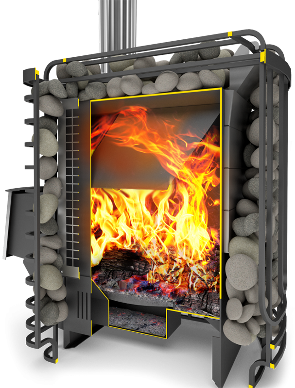 Печь для бани Теплодар Сибирский Утес 20 ЛП Профи - печь для парного помещения бани объемом до 20 м.куб. Топливный канал печи удлиненный для протапливания печи из соседнего с парной помещения бани. Топка выполнена из нержавеющей стали толщиной 4 мм для длительного периода эксплуатации. Большая масса камней печи Сибирский Утес позволяет надолго сохранять тепло. Кроме всего прочего печь оборудована перфорированным кожух-конвектором, который располагается между камнями и наружной стенкой топки печи. Т.е. между наружной стенкой топки и камнями есть небольшой зазор, он позволяет создавать конвекционные потоки воздуха, которые быстро прогревают парную и увеличивают ресурс печи охлаждая её. Встроенный парообразователь позволяет получить легкий пар с раскаленных пластин печи Сибирский Утес уже через 30 минут после растопки печи.Основные особенности печи Сибирский Утес 20 ЛП Профи:- протапливание печи из соседнего с парно помещения бани;- кожух-конвектор для быстрого нагрева парной (отсутствует у печей-сеток других производителей);- элегантный дизайн сетки;- наличие встроенного парообразователя;- высокая динамика нагрева и мягкий пар, приближенный к "Русской бане";- топка печи изготовлена из 4 мм нержавеющей стали (гарантия 5 лет).Нагрев воды возможен установкой бака на трубе или теплообменника в паре с выносным баком.Камни и бак в комплект печи не входят.