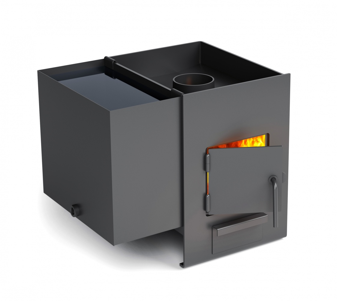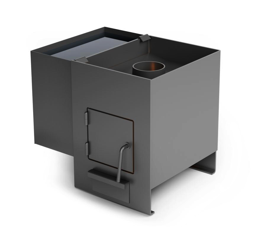 Модификация печи из конструкционной стали цвета «антрацит».«Двушечка» – печь-каменка со съемным боковым баком для горячей воды. Печь предназначена для парной объемом 6—12 м3, а также для отопления смежных помещений и нагрева воды в навесном баке (поставляется отдельно).Печь представляет собой простую стальную топку с верхней открытой каменкой из конструкционной стали толщиной 6 мм.«Двушечка» снабжена удобной дверцей топливника на шарнирах и замком с поворотной ручкой,Для печи предусмотрен съемный навесной боковой бак объемом 25 л (в комплект поставки не входит). Бак можно навешивать на правый, либо на левый бок печи.Отличительной особенностью печи является универсальность ее применения. «Двушечка» может выступать как банная печь, а также выполнять функцию отопительной печи. При этом она способна отапливать помещение площадью до 50 м3.Печь помещается даже в багажник легкового автомобиля и просто монтируется в бане или помещении.