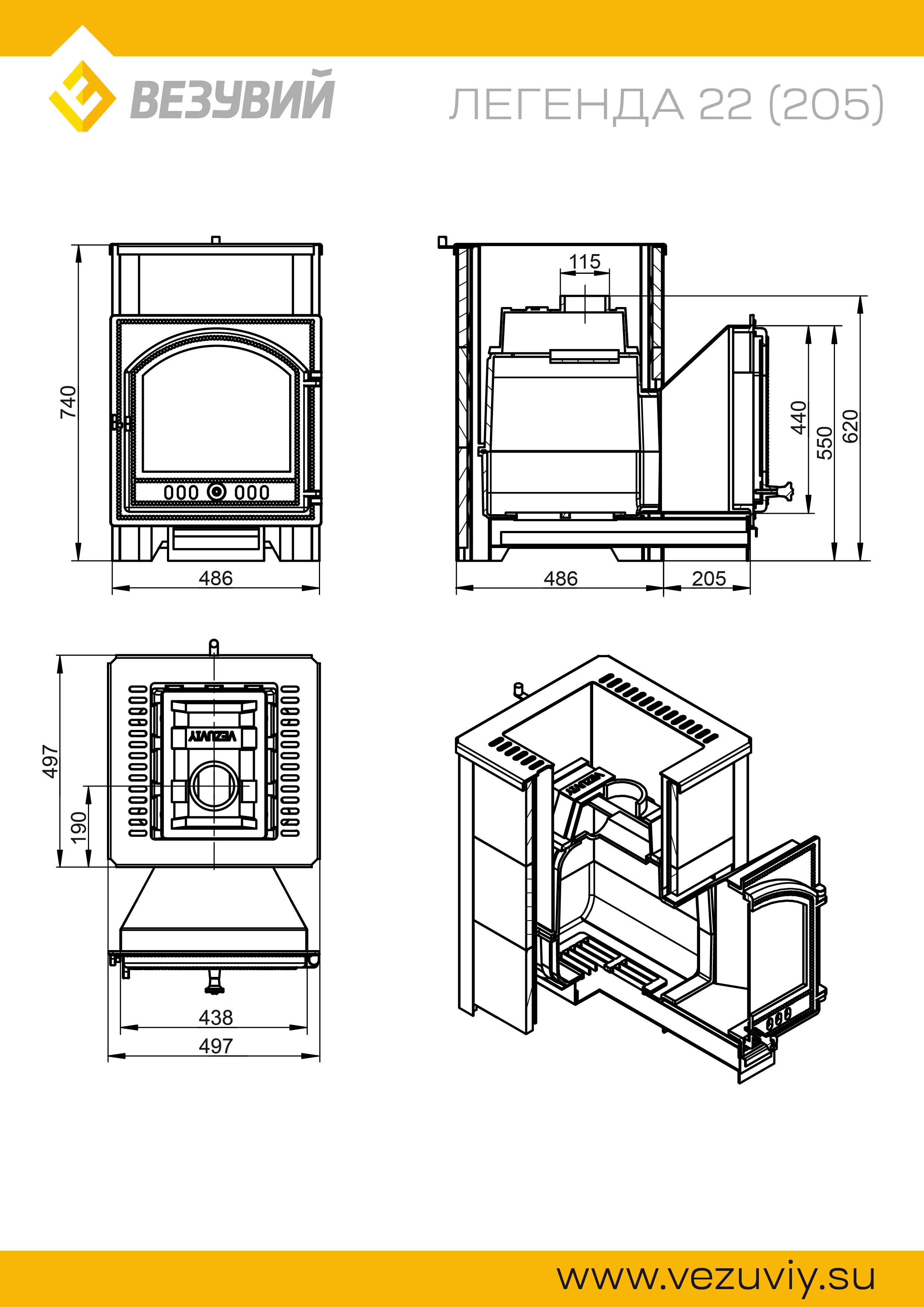 Преимущество печи в том, что топка печи состоит из 3-х ЧУГУННЫХ элементов. На стыке между ними используется керамический шнур с рабочей температурой 1200 градусов. То есть топка печи абсолютно герметична! Для фиксации деталей между собой применяется болтовое соединение, что даёт 100% гарантию безопасности при эксплуатации.Конвекционно–вентилируемая облицовка, изготовленная из экологически чистой горной породы , который обладает большой теплоёмкостью, что позволяет камню в короткие сроки нагреваться и максимально долго удерживать стабильную температуру в парильном помещении, а также гасить жёсткое инфракрасное излучение Камень обладает исключительными лечебными свойствами: помогает при головных болях, при нестабильном артериальном давлении, при простудных заболеваниях, воспалительных процессах в почках и пищеварительной системе, снимает повышенную возбудимость и нервозность, сглаживает эмоциональные всплески. Облицовка из натурального камня при нагреве способна аккумулировать тепло, что гарантирует максимально равномерный прогрев и сохранение тепла. Банная печь ЛЕГЕНДА 22 (205) укомплектован чугунной каминной, самоохлаждаемой дверцей Везувий 205 с большим жаропрочным стеклом «SCHOTT ROBAX», с оборудованной системой самоочистки, что позволяет визуально контролировать горение и любоваться видом живого огня. Данная печь рассчитана на объем парильного помещения 12-24 м3.