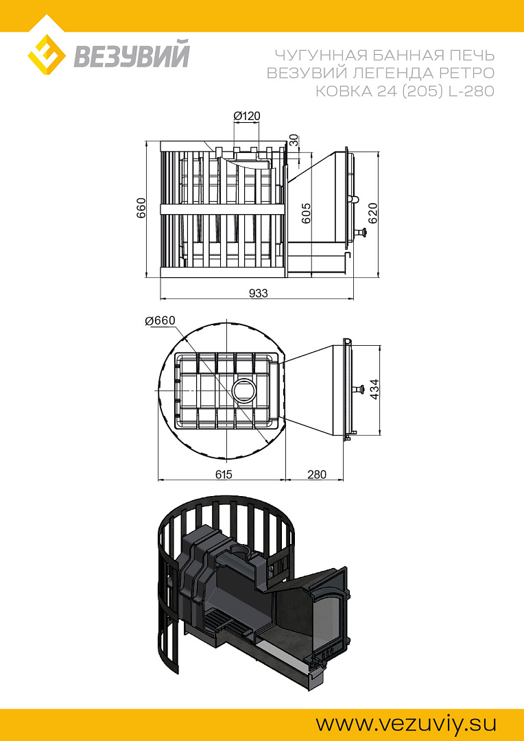 Печь для бани ВЕЗУВИЙ Легенда Ретро Ковка 24 (205) L-280