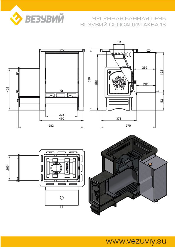 Преимущество печи в том, что топка печи состоит из 3-х элементов. На стыке между ними используется керамический шнур с рабочей температурой 1200 градусов. То есть топка печи абсолютно герметична! Для фиксации деталей между собой применяется болтовое соединение, что даёт 100% гарантию безопасности при эксплуатации.Преимущество печи «Сенсация» объемная, вентилируемая каменка позволяющая максимально быстро нагреть камни с четырёх сторон в кратчайшие сроки. Большая масса камней, закладываемая в каменку печи, нагревается до 350 °С, что позволяет обеспечить стабильность температуры в парилке и является мощным парогенератором. Поверхность нагрева печи охвачена сверхъемким наружным конвекционно-вентилируемым кожухом, что значительно ускоряет нагревание воздуха в парилке за счёт образуемого им мощного конвекционного потока.Банная чугунная печь Сенсация 16 (ДТ-4) укомплектована чугунной не герметичной дверцей Везувий ДТ-4. Навесной бак для воды (30 литра) - В КОМПЛЕКТАЦИЮ НЕ ВХОДИТ.Так же, возможна установка 2-х баков одновременно.